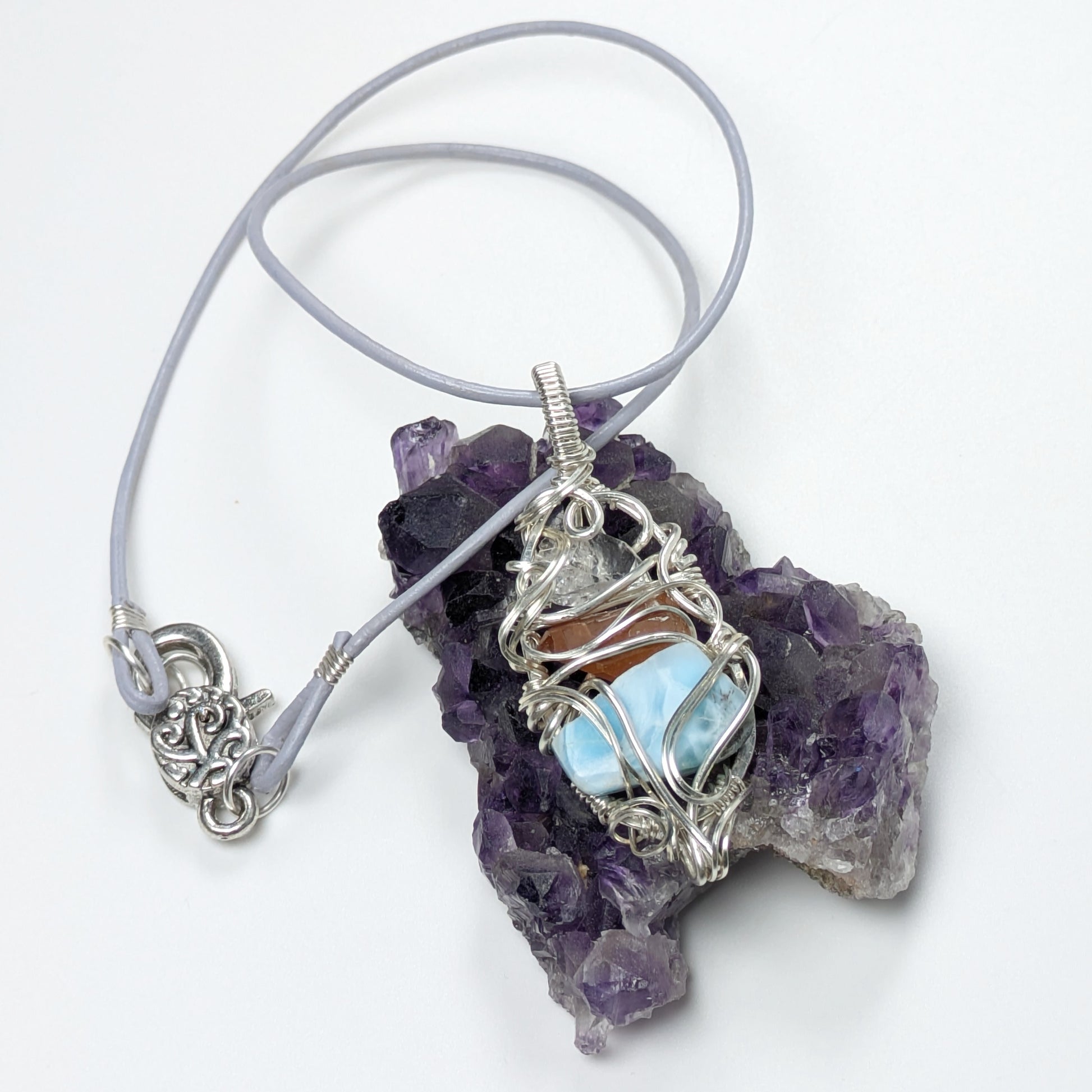 Multi-Stone Pendant with Larimar, Quartz, and Herkimer Diamond