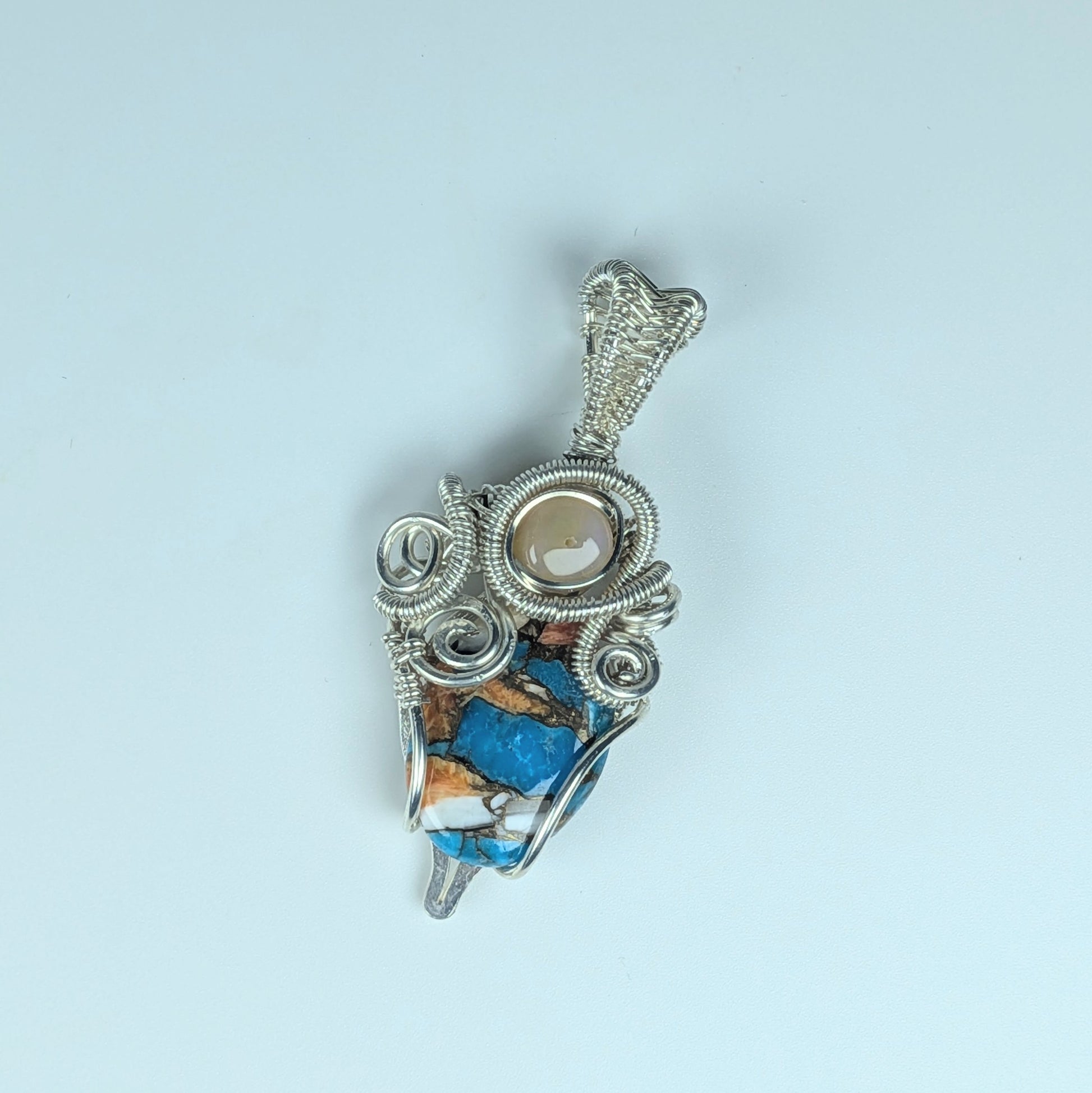 Spiny Oyster Turquoise Pendant with Opal Bead