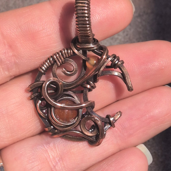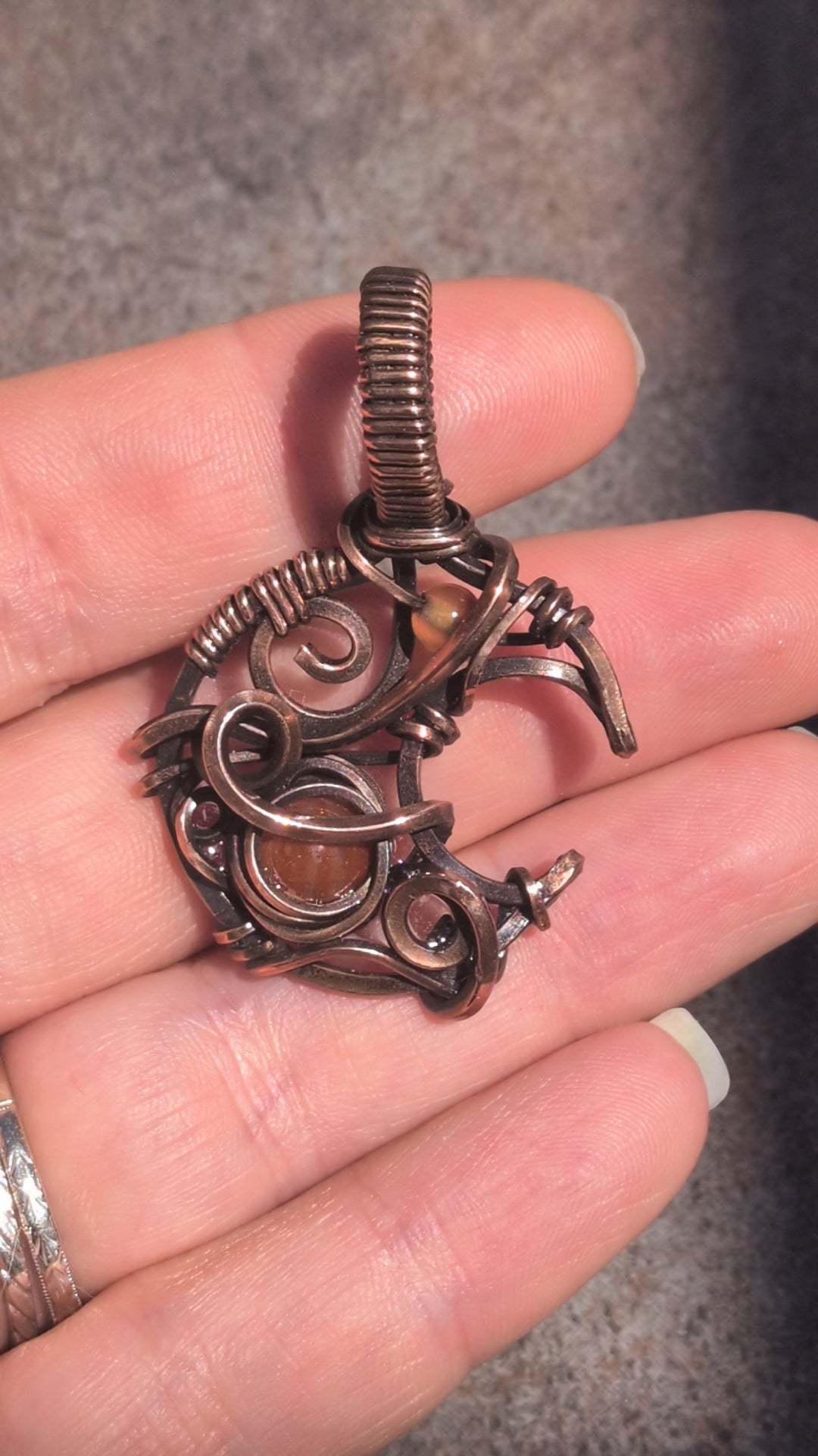 This moon is a fair bit smaller than other moon pendants I've made, I was aiming for a minimalist approach for those who like smaller more delicate pendants. The two beads in the moon are Carnelian!