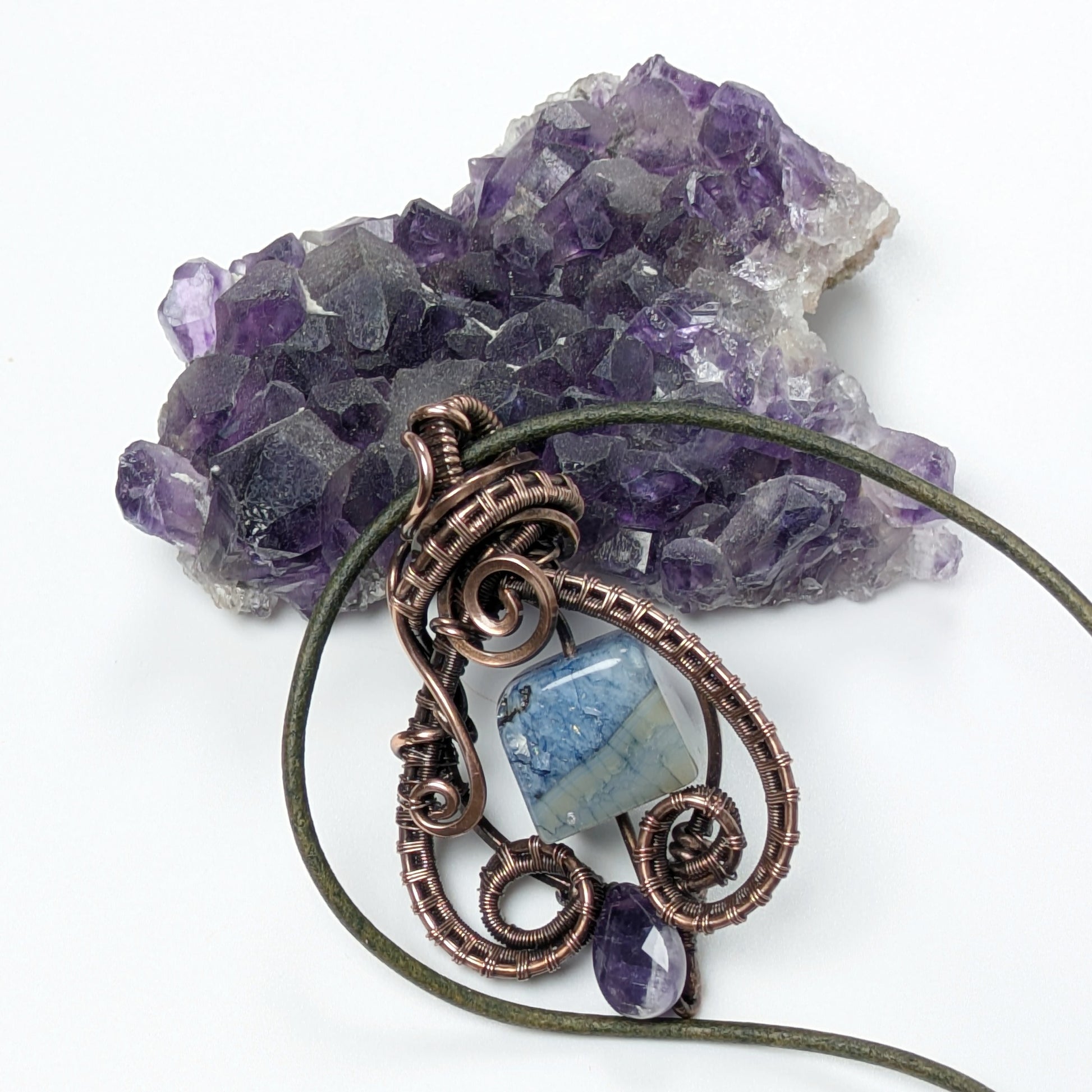 This was a neat concept for a pendant I had that I think worked out really well. I got a couple if these really cool agate cube beads that are polished to perfection and feel really cool in my hand. I decided to make something that people could actively play with (see video) as a fidget necklace, as I tend to fidget a lot with my necklace that also has a couple mobile beads that spin a little.