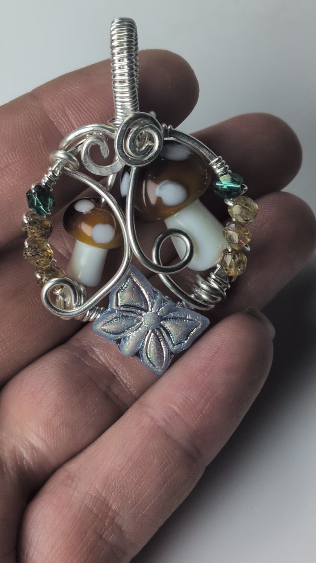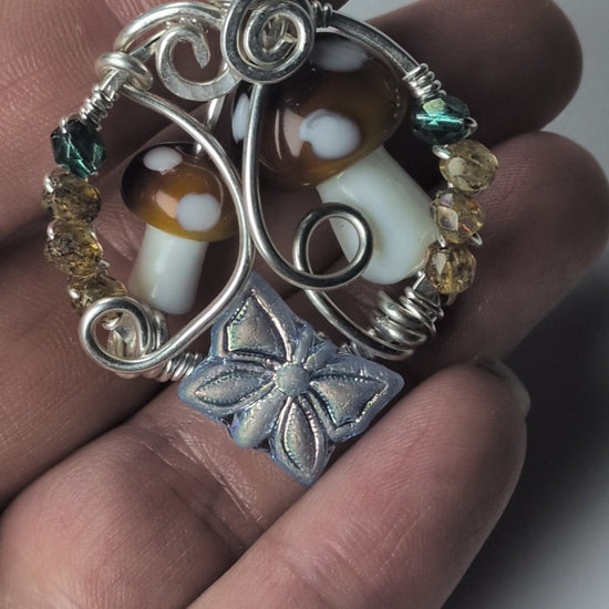I love making these whimsical little mushroom pendants! The glass butterfly really completes the piece in addition to the sparkling glass beads along the side! The pendant is made with 10% fine silver-filled metal, if you are wondering what the difference is between silver plating and silver-fill; check out my blog post about it! Link: https://gorgeswiredesign.com/blogs/news/metals-101-plating-vs-fill-and-other-useful-information