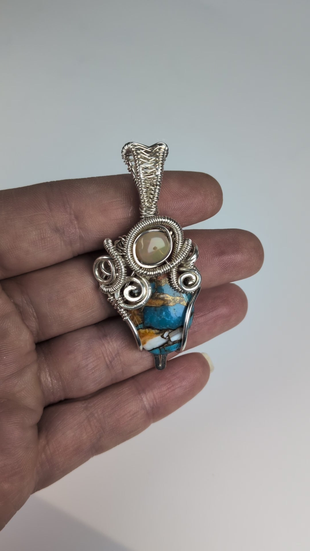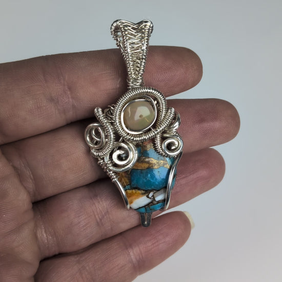 Spiny Oyster Turquoise Pendant with Opal Bead