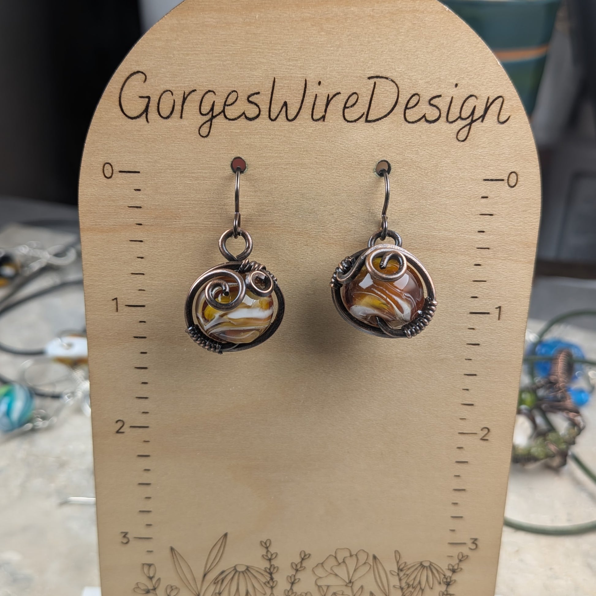 These earrings are made with lamp worked glass beads that I made myself over hot flame, and were then annealed in a hot kiln overnight!